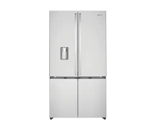 541L french quad door refrigerator, natural stainless steel with in door ice & water dispenser