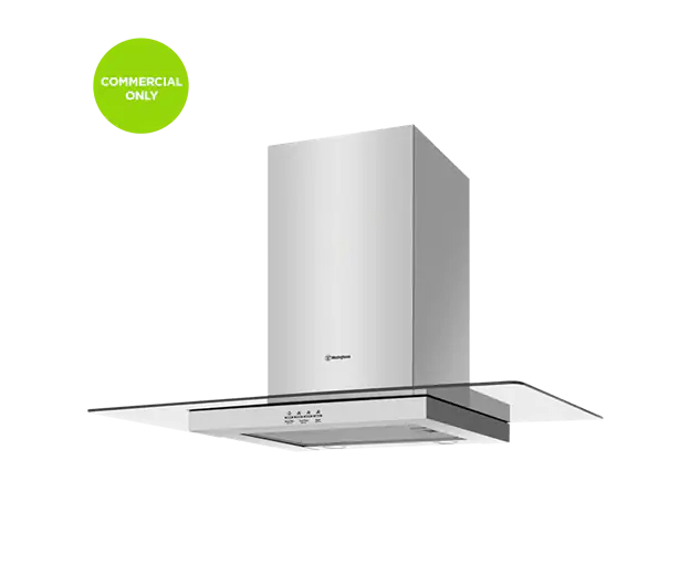 90cm stainless steel and flat glass canopy hood with 810 cubic m/h extraction on boost and LED lighting