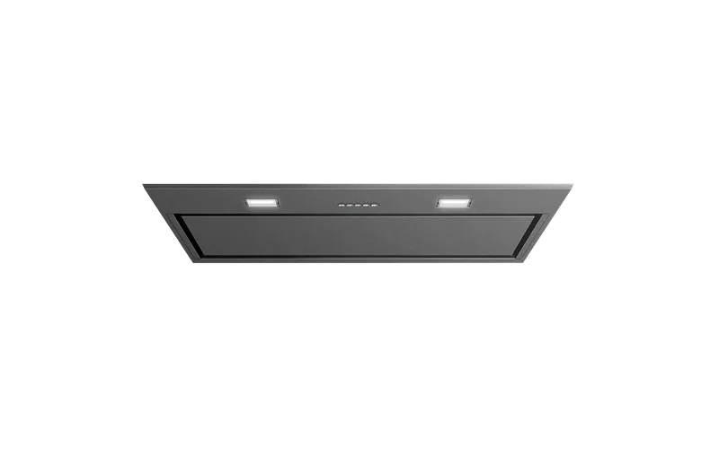 86cm integrated rangehood in dark stainless steel with Hob2Hood technology, maximum airflow of 680 m3/hr and efficient perimeter extraction.