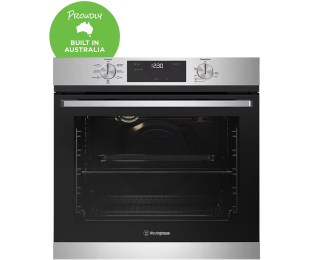 60cm multi-function 7 stainless steel oven with fast heat up, programmable timer and 80L gross capacity.