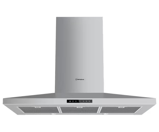 90cm stainless steel canopy hood with 840m3/h extraction, LED lighting, 3 fan speeds and dishwasher safe mesh filters.