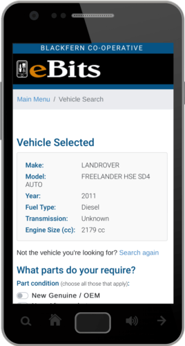 Our eBits system enables you to select the vehicle you're working on, describe the parts you're after, maybe take a photo or two, and let our suppliers know you need their input. We will contact our suppliers for you, informing them of what you're after and how best to contact you.
